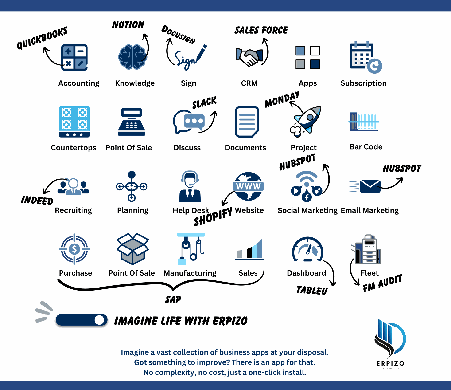 ERPIZO offers a comprehensive suite of applications built on a no-code platform, making it easier for businesses to streamline operations, boost efficiency, and embrace digital transformation without the complexity of traditional ERP solutions.